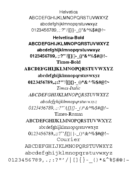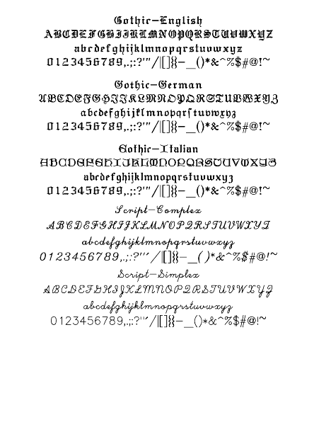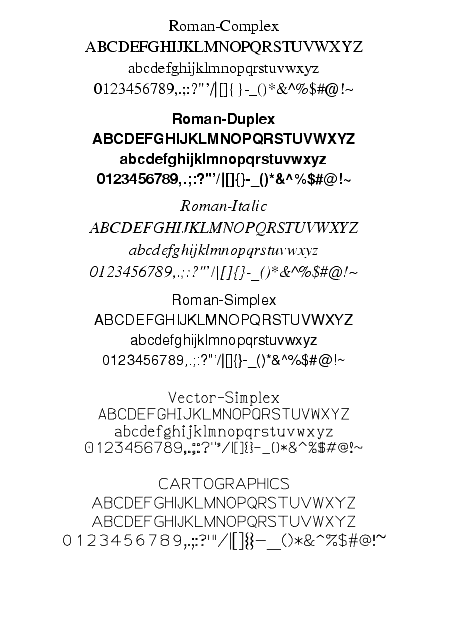 This page shows all the fonts supported by the Annotation and Graphing Kit.