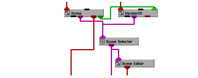 - The diagram below shows the final connections between Scene, Uscene3D and Scene_Selector inside Uviewer3D.
