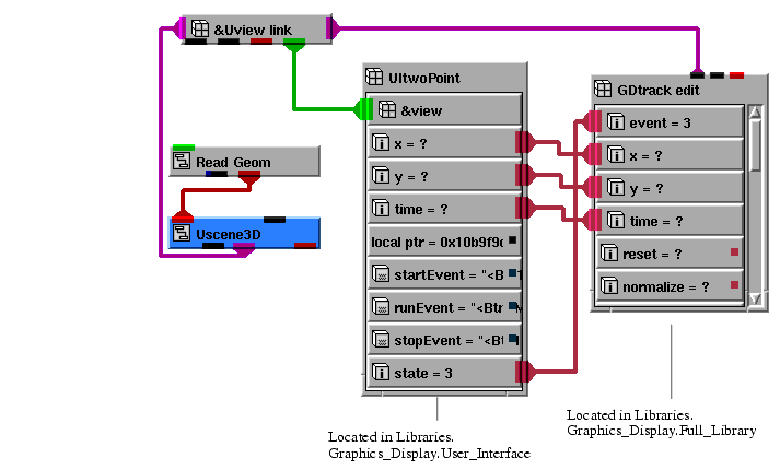 - Instance UItwoPoint and GDtrack_edit and connect them (exposing ports as necessary) as shown in the diagram that follows.