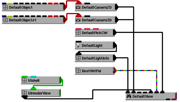 You can create a view by assembling base objects, according to the structure shown below. DefaultPickCtrl and DefaultLight are optional. A view must have at least one camera: