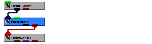 - Instance into the SingleWindowApp workspace the following: ReadField, bounds and isosurface. Then, connect them as shown in the diagram below.