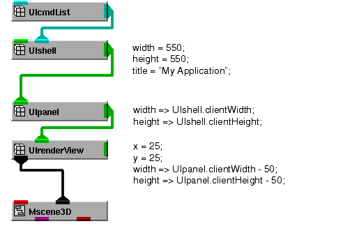 - With an application component. An application component is a macro object that packages a set of Graphics Display Kit capabilities. For example, Mscene3D is a macro object that defines a view, including a 3D camera, a set of lights, and other view-related base type objects.