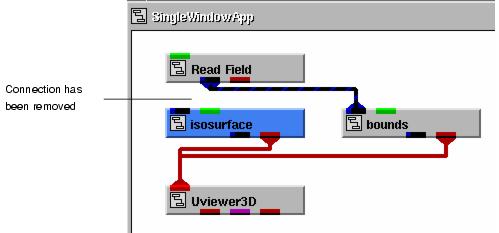 - One way to disconnect objects is to repeat the connection operation, as if you were connecting the objects a second time. Another way is to move the mouse pointer to the connection line, then select the Delete Connection popup command with the right mouse button. AVS/Express disconnects the objects.