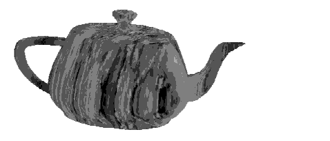 Texture mapping can be likened to draping an image painted on a flexible canvas over a surface. There are different texture mapping algorithms which specify how to drape the image over the surface. The AVS/Express module texture_mesh provides one such algorithm. Using it, you can map textures onto objects, such as the satellite image onto an object created from DTED data, or, as shown below, a marble texture onto the teapot object: